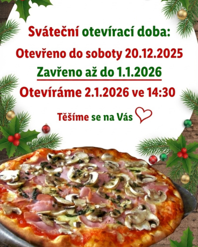 Pokud máte velkou objednávku (15 pizz a více), volejte ideálně den předem, může se stát, že na vás nevyjde těsto (těsto kyne a dělá se několik hodin dopředu).